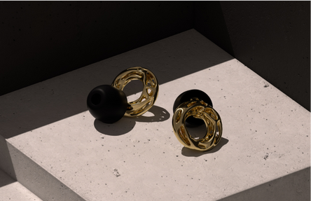 A unique collection of seven solid gold AI-generated earplugs. Designed to show the limitless possibilities of AI, these 18-karat gold earplugs are considered the rarest earplugs on the planet.